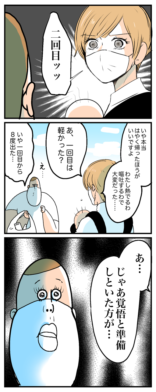 1回目顕著な人は2回目軽いって意見もありますし、人それぞれな反応をあれこれ懸念してると頭パンクします。