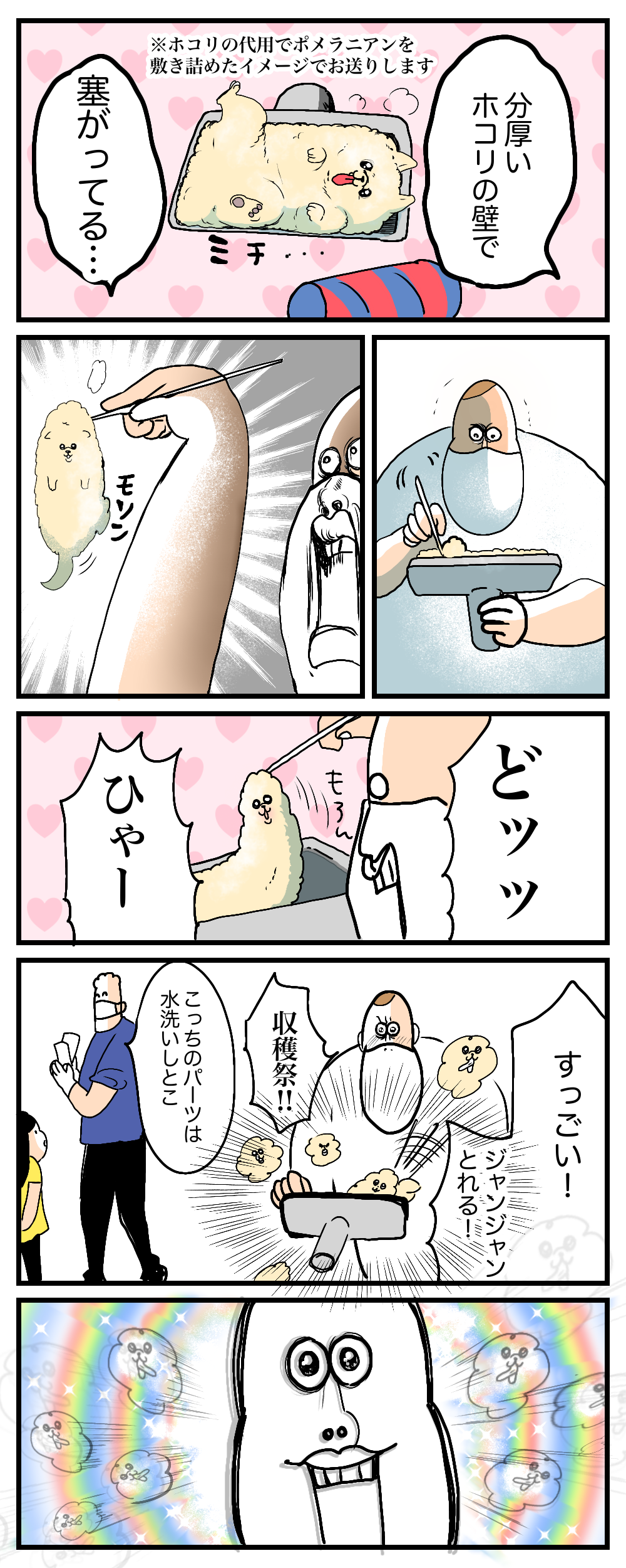 フェルト化したホコリがモッッッサアアアアと取れる快感は一度やったら病みつきです。