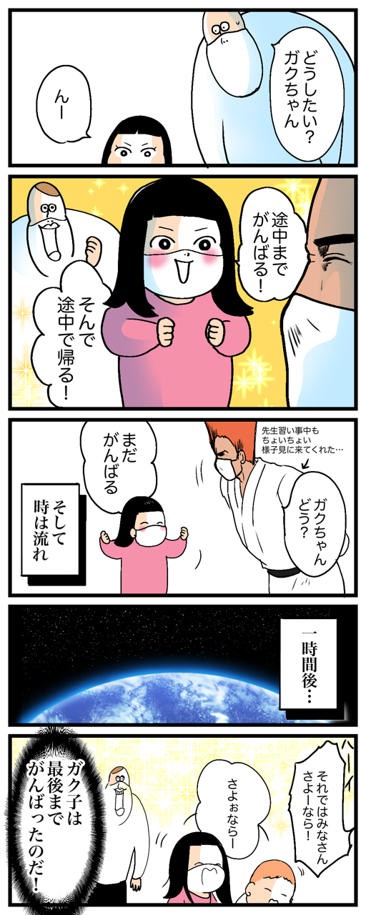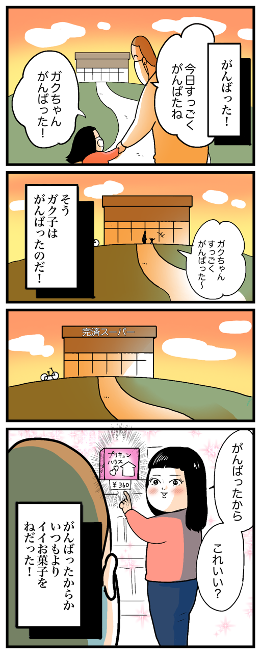 あと、私は母として、ガク子ちゃんママの付き合ってあげる精神に感動しました。私だったら、行きたくないんならもう行かなくていいよ!ってなっちゃう。