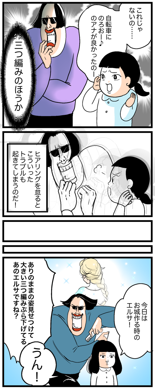 私は以前保育士をしていて、赤ちゃんから小学生まで関わっていたのですが、本当に希望を言われても、全く出来ないし、どうしたら編み込みとか、ぐるぐるとか出来るのか全~然覚えられませんでした。
