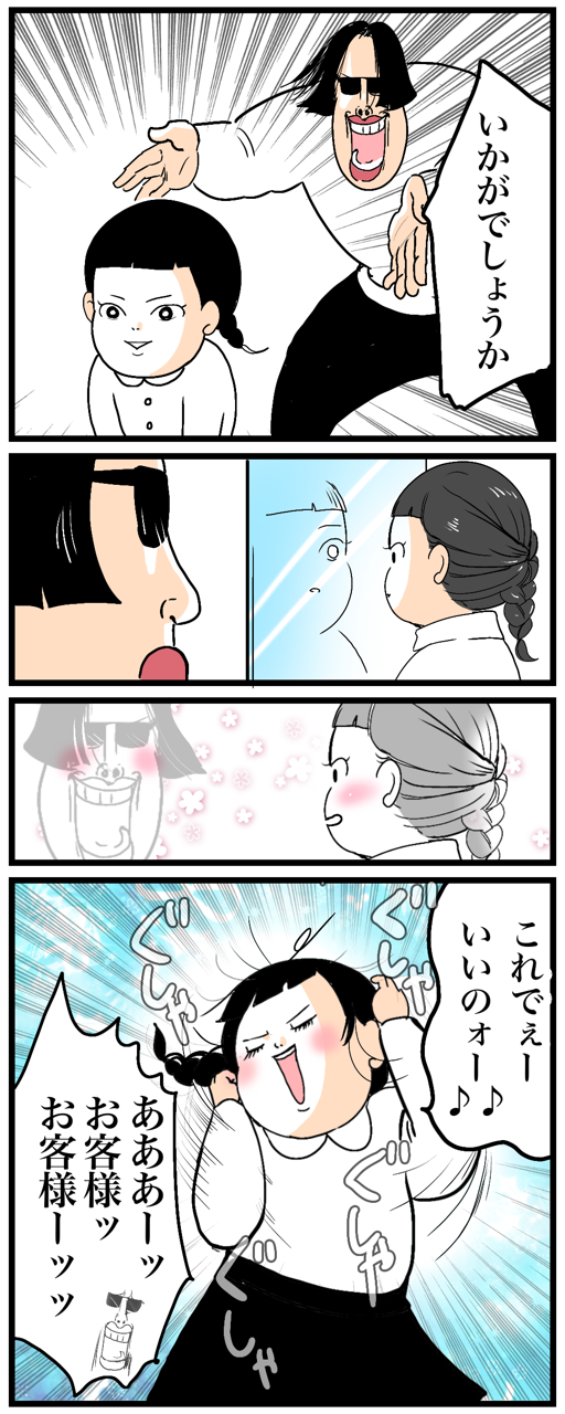 了承を得たものの、親の都合で髪型変えてこれも一種の虐待かななんて切った直後は思いましたが、どんな髪型でも子供って存在は可愛いなと再認識しています。