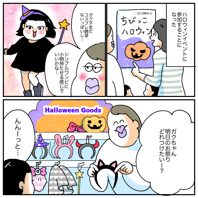2019/10/28 ガク子とハロウィン🎃前編 後半へ続く🧐 「登場人物」カテゴリの最新記事 < 前の記事次の記事 > コメント コメント一覧 (37) 1. Σ(゜ω゜) 2019/10/28 20:05 ほ、本格的! 0 boobooboopiyo がしました 2. おます 2019/10/28 20:08 ガクちゃんセンスが凄い😂😂😂 0 boobooboopiyo がしました 3. タミヤン 2019/10/28 20:15 気になる展開! 0 boobooboopiyo がしました 4. 32ami 2019/10/28 20:31 がくちゃんかんわいい どうぶつのもりのツタンカーメンの帽子を思い出しまた。3等身くらいの頭重たいシルエットってかんわいいですよね。 0 boobooboopiyo がしました 5. えりんぎ 2019/10/28 20:32 チョイスにセンスを感じます! 0 boobooboopiyo がしました 6. すーも 2019/10/28 20:33 ガクちゃんのセンス、将来楽しみでしかない 0 boobooboopiyo がしました 7. みき 2019/10/28 20:34 がくちゃんのセンスといい、買ってあげる優しいブブさんといい、それを付けるがくちゃんのシュールさといい… もう笑いすぎて泣きました😂✨ 0 boobooboopiyo がしました 8. しほ 2019/10/28 20:37 後編楽しみです!更新楽しみにしています☺️ 差し支えなければ、ぜひコスプレ姿のガク子ちゃんのお写真を拝見したい…!!! 0 boobooboopiyo がしました 9. ま 2019/10/28 20:37 だいすきです😂❣️ 0 boobooboopiyo がしました 10. ちちゃんま 2019/10/28 20:51 つ、強いwwwwww 0 boobooboopiyo がしました 11. えーりん 2019/10/28 20:51 しぶい!!! かわいすぎる笑笑 0 boobooboopiyo がしました 12. もん 2019/10/28 20:52 腹抱えて笑いました。続きが気になって眠れません。 0 boobooboopiyo がしました 13. 2019/10/28 20:52 ひぇっ、どこに売ってるんですか!? そして子どもたちが見たら泣きそう。・゚・(ノ∀`)・゚・。 0 boobooboopiyo がしました 14. 2019/10/28 20:56 がくちゃん本格派過ぎた笑 自分の子がやってもブブさんのようにホントに?って何度も聞いてしまいそうです笑 0 boobooboopiyo がしました 15. がくたそLove 2019/10/28 21:01 すごい強めなチョイス!笑超気になる!!笑笑 0 boobooboopiyo がしました 16. nao 2019/10/28 21:03 流石‼️ガク子様💀 0 boobooboopiyo がしました 17. まる 2019/10/28 21:15 いやもう絶対血筋w 0 boobooboopiyo がしました 18. ふぁーふぁっ 2019/10/28 21:16 ガチのやつ!買ったんですか 笑 続き楽しみです(o^-^o) 0 boobooboopiyo がしました 19. デジャヴ 2019/10/28 21:25 ふーん、おもしれー女。 0 boobooboopiyo がしました 20. あ 2019/10/28 21:25 いつもクスクス笑ってるだけでしたが、とうとう実写のシュールさに負けての初コメントです 本当に面白いです絵もだいすきです 0 boobooboopiyo がしました 21. まる 2019/10/28 21:28 いいわぁ、このチョイス(笑) 明日がめっちゃ気になります! 0 boobooboopiyo がしました 22. ゆー 2019/10/28 21:56 ガクちゃんのセンス大好き!! 0 boobooboopiyo がしました 23. みいこママ 2019/10/28 22:03 キートン山田のナレーションが聞こえてきました🤣 0 boobooboopiyo がしました 24. ちゃみ 2019/10/28 23:11 ガクちゃんのセンス最高👏✨ 後半が楽しみです😊 0 boobooboopiyo がしました 25. あいむ 2019/10/28 23:16 他の子供泣くやつじゃないですかw 0 boobooboopiyo がしました 26. ハル 2019/10/28 23:29 ガクちゃんって意外www😱 0 boobooboopiyo がしました 27. ゆりゆり 2019/10/28 23:51 いつも夫婦で楽しく読ませてもらってます✨ 買ってあげたんですね😂 私なら絶対他のに誘導してしまうので、希望を叶えてあげる教育方針本当に尊敬します! 0 boobooboopiyo がしました 28. かんママ 2019/10/29 08:52 やってしまった…。また通勤電車で読んでめっちゃ吹いちゃいました😂😂😂 いつも楽しく読んでます💕 0 boobooboopiyo がしました 29. ふーちゃ 2019/10/29 09:07 今からそれを選ぶとは…… センスの塊ですね(*´ω`*)❤️ ガクちゃん、素敵~✨(笑) 0 boobooboopiyo がしました 30. Chaco 2019/10/29 10:41 早く続きが…キニナル💭👀✨ 0 boobooboopiyo がしました 31. hana 2019/10/29 11:25 電車なのに笑っちゃったw😂 後編楽しみ🎵 0 boobooboopiyo がしました 32. ゆー 2019/10/29 11:29 チョイスのくせがすごいww 0 boobooboopiyo がしました 33. みーまん 2019/10/29 12:28 本格的なハロウィンですね\(^o^)/ センスが素晴らしい\(^o^)/ 0 boobooboopiyo がしました 34. SAKI 2019/10/29 14:11 えぇぇぇ!これ〜〜!?笑笑 希望通り買ってあげたブブさん尊敬です✨✨ 0 boobooboopiyo がしました 35. がくこファン 2019/10/30 09:42 もう、がくちゃん素敵なチョイス😂😂😂 0 boobooboopiyo がしました 36. れいな 2019/12/08 23:26 この話だいすき😂❤️ 0 boobooboopiyo がしました 37. 匿名さん 2021/01/30 13:48 世代的にハロウィンなんてなかったけど、うちなら私が娘にこれをゴリ押しして困惑させてたに違いない。 笑い過ぎて涙出た。 0 boobooboopiyo がしました コメントフォーム 名前 コメント 記事の評価 リセット リセット 顔 星 情報を記憶 コメントを投稿する