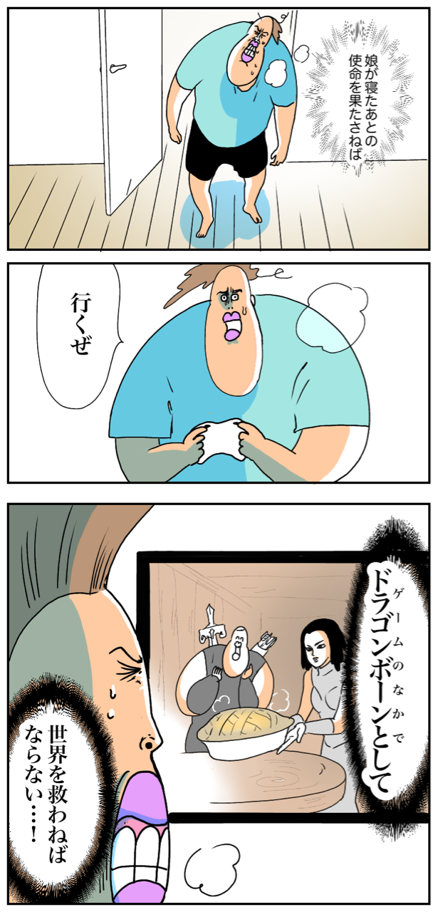 私も子供を寝かしつけた後に、ドラゴンボーンになってます(笑)