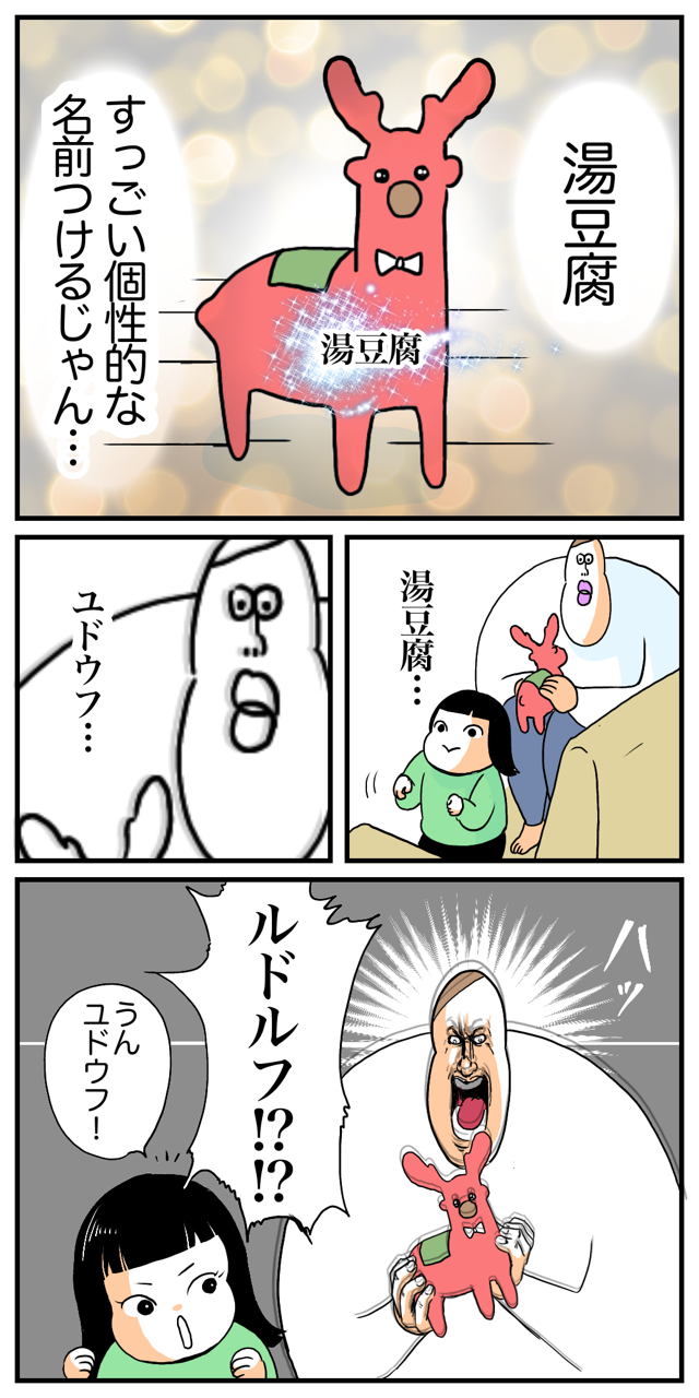 2020/12/26 🎄わたし、サンタのガク子!この子はトナカイの‥🎅🎅 クリスマスイブより前のこと🎅「最近よく読んでたクリスマスの絵本とかでよくルドルフって名前のトナカイさん出てきてたわ〜!」っていいまつがいに気づけたけど俺でなきゃ見逃しちゃうね🎄またクリスマスの日記もかくかもです🙋♀️↓🎄🎄クリスマス関連の日記 「ガク子」カテゴリの最新記事 < 前の記事次の記事 > コメント コメント一覧 (47) 1. しん 2020/12/26 12:01 湯豆腐可愛い!センス最高 0 boobooboopiyo がしました 2. ガーシュリ 2020/12/26 12:03 メリークリスマス🎄🎁😊 いつも楽しいお話ありがとうございます😊 ご家族皆さんの健康を祈っていますね〜 0 boobooboopiyo がしました 3. るるこ 2020/12/26 12:04 何故か湯豆腐が湯婆婆に見えたw 0 boobooboopiyo がしました 4. moi 2020/12/26 12:05 いいんじゃないでしょうか!ユドウフ! うちの長女は小さい時に夜店で掬った金魚にエダマメって名前付けてました… そして我が家の猫さんはみたらし団子です。←長女命名 0 boobooboopiyo がしました 36. カナ 2020/12/26 22:14 >>4 moiさん 長女ちゃんのセンスも最の高です!! えだまめとみたらし団子🤣🤣🤣 可愛すぎます!! 0 boobooboopiyo がしました 5. にゃんち⭐︎ 2020/12/26 12:08 一瞬、トナカイさんの顔がパパに見えたのは私だけかな?❣️ 0 boobooboopiyo がしました 6. かなた 2020/12/26 12:14 湯豆腐と燗で鼻が赤いんですねわかります 0 boobooboopiyo がしました 7. 幸子 2020/12/26 12:17 さすが!!湯豆腐からルドルフにはママでないと辿り着けない・・笑笑 0 boobooboopiyo がしました 8. ゆん 2020/12/26 12:29 言いまつがいに気付いてしまったら団長のインドアフィッシュに狙われてしまうので気をつけてください🐟笑 0 boobooboopiyo がしました 9. あお 2020/12/26 12:32 いいまちがいをかきまつがえてますよ😙😙 0 boobooboopiyo がしました 34. 通りすがり 2020/12/26 22:07 >>9 いいまつがいってわざと言ってるんやで 0 boobooboopiyo がしました 10. たみ 2020/12/26 12:45 さすがキルアさんです😂 0 boobooboopiyo がしました 11. たみ 2020/12/26 12:47 >>10 やだ違う!これ言ったのキルアじゃない、名前ない人でしたね、すみません😂 0 boobooboopiyo がしました 38. 手刀を見逃さない人 2020/12/27 10:22 >>11 恐ろしく速い間違い訂正…オレでなきゃ見逃しちゃうね 0 boobooboopiyo がしました 12. なまえがなしこ 2020/12/26 12:54 最高だね! 0 boobooboopiyo がしました 13. おしげ 2020/12/26 13:16 かーちゃんじゃなきゃ気付けない いいまつがいぶっこんでくるガクちゃん❤️キュンです❤️ 湯豆腐、ゆどうふ、ルドルフ うちの子は鬼滅のひめじまさんの「よもや」が言えなくて 「もやもやだ!もやもやだ!!」 って真似してて、かーちゃんじゃなきゃ気付けない いいまつがいしてました(о´∀`о) 0 boobooboopiyo がしました 47. またあ 2021/01/25 21:36 >>13 よもやは煉獄さんですよー! 0 boobooboopiyo がしました 14. こうしくん 2020/12/26 13:22 クリスマスも可愛かったんだろうなぁ!楽しみにしてます♡ 0 boobooboopiyo がしました 15. 昼休憩中 2020/12/26 13:32 赤鼻の湯豆腐……… 0 boobooboopiyo がしました 16. umamineko 2020/12/26 13:37 ルドルフかーらーの、湯豆腐(*゚∀゚*)子供の言い間違えってやはり可愛い。因みに、我が娘は『お月さま』かーらーの、『おちち様』…どんだけ!? 0 boobooboopiyo がしました 17. まる 2020/12/26 13:39 言いまつがいに気づいたブブサンすごいw 0 boobooboopiyo がしました 18. まつこ 2020/12/26 13:45 湯豆腐🤣‼️ まさかのルドルフ🤣🤣 0 boobooboopiyo がしました 19. らいおん 2020/12/26 13:49 吹き出しブブさん😂 0 boobooboopiyo がしました 20. ごまたまご 2020/12/26 14:04 ““気づいた””ときのお顔が特に最高です!! 言いまつがい聞きまつがい、なくなっていくのさびしい。。。 0 boobooboopiyo がしました 21. まっち 2020/12/26 14:34 さすがお母さま!! 他人じゃ絶対気付かない😂 0 boobooboopiyo がしました 22. 花子 2020/12/26 14:38 湯豆腐でもかわいい😍💕 0 boobooboopiyo がしました 23. 🥕 2020/12/26 14:54 ルドルフに気づいた時のブブさんの顔www🤣 0 boobooboopiyo がしました 24. デオ 2020/12/26 15:14 顔型の吹き出しがたまらないです。 0 boobooboopiyo がしました 25. ぷっぷ 2020/12/26 15:18 盛大に吹いたwwwwwww 0 boobooboopiyo がしました 26. ハンター 2020/12/26 15:35 恐ろしく速い手刀… 0 boobooboopiyo がしました 27. ふなこ 2020/12/26 15:48 『湯豆腐』かわいいからそのまま湯豆腐で😂 0 boobooboopiyo がしました 28. ぱぅ 2020/12/26 16:06 わすれんぼうのサンタクロース…かな? 湯豆腐、センス抜群です✨ 0 boobooboopiyo がしました 29. つたっこ 2020/12/26 16:16 懐かしい(笑) クロロにやられちゃうオチのハンターの人(笑) 子どもの言いまつがい楽しいですよね✨ 0 boobooboopiyo がしました 30. すらん 2020/12/26 17:39 所変われば字もかわる ルドルフが湯豆腐になったり マイケルがミッシェルになったり、ミハエルになったり、ミカエルになったり 巡り巡って日本に来ると見栄晴になります 0 boobooboopiyo がしました 31. くつした 2020/12/26 18:22 精一杯「ルドルフ」って言ってるつもりなのでしょうね(^^♪ 