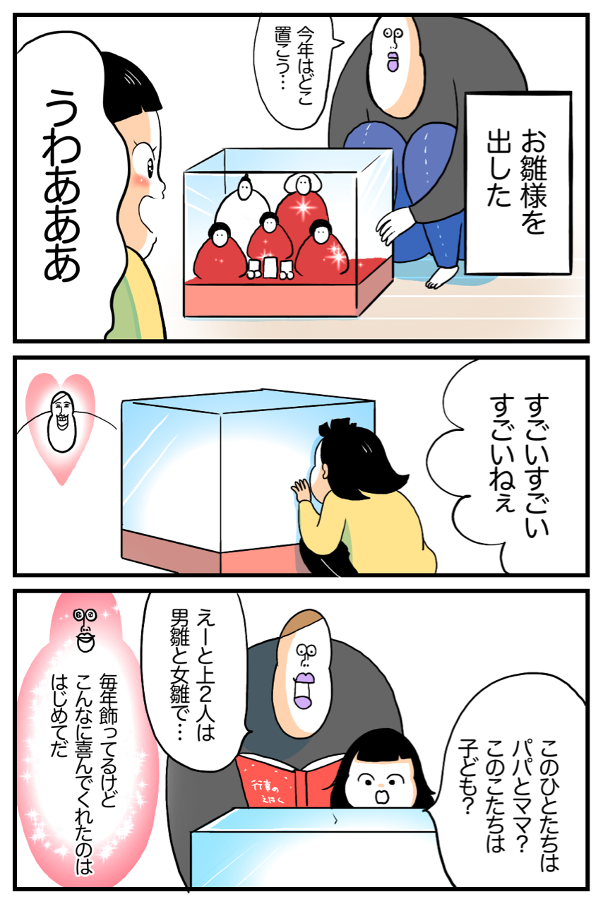 ウチもそろそろお雛様を飾ろうと思ってるんですが、反応してくれるのはまだまだ先なんだろうなぁ〜(初節句です)