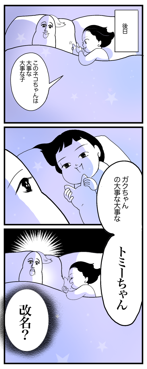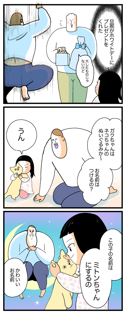 2021/03/29 🧸4歳娘がぬいぐるみにつける名前🧸 猫のぬいぐるみさん名前はコロコロかわるけどすごく可愛がってる😺▼前回 どうも胡蝶しのブブです。いつもコメントありがとうございます🦋長男ってワードきくと炭治郎のことで頭いっぱいになるクセ治したいです 「ガク子」カテゴリの最新記事 < 前の記事次の記事 > コメント コメント一覧 (20) 1. ブブブ 2021/03/29 12:02 ブブさんがガクちゃんよりとても喜んでいる…‼︎ 0 boobooboopiyo がしました 2. かほ 2021/03/29 12:03 ちょww喜び方よww 改名すごいしますよね、結局どれになるんだろー 長男……うちの旦那……炭治郎感微塵もないな 0 boobooboopiyo がしました 3. イボンヌ 2021/03/29 12:03 我が家も旦那の名前をお友達に言う時毎回違う名前で誰の事?となります😂笑 この前はゴミザでした。 0 boobooboopiyo がしました 8. しーちゃんママ 2021/03/29 12:24 >>3 パパさん・・・😂w 0 boobooboopiyo がしました 18. ちょ笑笑 2021/03/29 21:27 >>3 ゴミザって何?!?!?!?!?!?! 0 boobooboopiyo がしました 4. たかみ 2021/03/29 12:05 がくちゃん可愛いぃぃ♥️ それだけ大事にしてくれたらパパも嬉しいだろうなぁ。 あっ、昨日ガチャ発見して回してきました! がくちゃん当たりました~♥️ 前髪切りすぎぶぶさんも欲しくてもう一度回そうとしましたが、息子(6歳)に『お母さん。ガチャガチャは1日1回だよ?』とたしなめられました(笑) 0 boobooboopiyo がしました 5. しゅりママ♡︎ʾʾ 2021/03/29 12:06 可愛いです☺️我が家の4歳児も全てに名前付けています💚リリー、マシュー、モニカなど何とも素敵な名前の中にたまに出てくるカンタロウが好きです。 0 boobooboopiyo がしました 6. まっちゃ 2021/03/29 12:18 昨日は脇っぱら丸出し、今日は背中丸出しで喜ぶブブさんが大好き💕😂ぬいぐるみを抱きしめて寝るがくちゃんが天使のように可愛らしい💖 0 boobooboopiyo がしました 7. ゲス 2021/03/29 12:24 ブブさんが何もらったのか気になるうう 0 boobooboopiyo がしました 9. かー 2021/03/29 12:28 ガクちゃん、ネコちゃんに優しい声かけ✨ 母性が溢れてますね〜🥰 そして、ブブさんがセーラームーンみたいでスキ😍(ネコ繋がりかな?) 0 boobooboopiyo がしました 10. タートルネックボーイ 2021/03/29 12:37 私の娘もぬいぐるみの名前を訪ねる度に変わります。 この前は◯◯ちゃんだったよね?と言うと、物凄い形相で睨みつけられます。 0 boobooboopiyo がしました 11. ヲタク 2021/03/29 12:49 長男って見たり聞いたりしたら炭治郎じゃなくてBTSのJINが出てくる私のは末期 0 boobooboopiyo がしました 12. moi 2021/03/29 13:20 しょっちゅう変わりますよね…w ウチの子はめちゃリアルなネコのぬいぐるみにカカロットって付けてました…( ˊᵕˋ ;)💦 0 boobooboopiyo がしました 13. ゆゆぽむ 2021/03/29 13:39 ミトンちゃんのままだったらうちで飼ってるうさぎの名前と一緒だったのにな〜🐇 0 boobooboopiyo がしました 14. りん 2021/03/29 17:48 ブブさんが何を貰ったか気になります! 0 boobooboopiyo がしました 15. おにやま 2021/03/29 17:52 ブブさんなにもらったんだろう🤔 0 boobooboopiyo がしました 16. 呪術廻戦 2021/03/29 21:23 最近は長男といえば呪術の脹相が頭に浮かびます。長男って考え方男前なんすね、、、、。 0 boobooboopiyo がしました 17. とんび 2021/03/29 21:26 改名??って思った時の感じすごくよくわかる笑 0 boobooboopiyo がしました 19. ペガサス流星拳 2021/03/30 00:33 きっと色んな魂が宿っているのさʕ•̫͡•ʕ*̫͡*ʕ•͓͡•ʔ-̫͡-ʕ•̫͡•ʔ*̫͡*ʔ-̫͡-ʔ 0 boobooboopiyo がしました 20. * 2021/04/03 20:45 ブブさんが月に座ってるコマでねこねこ幻想曲思い出した……読みたい…… トミーちゃんえらい洋風な名前ですね? 0 boobooboopiyo がしました コメントフォーム 名前 コメント 記事の評価 リセット リセット 顔 星 情報を記憶 コメントを投稿する