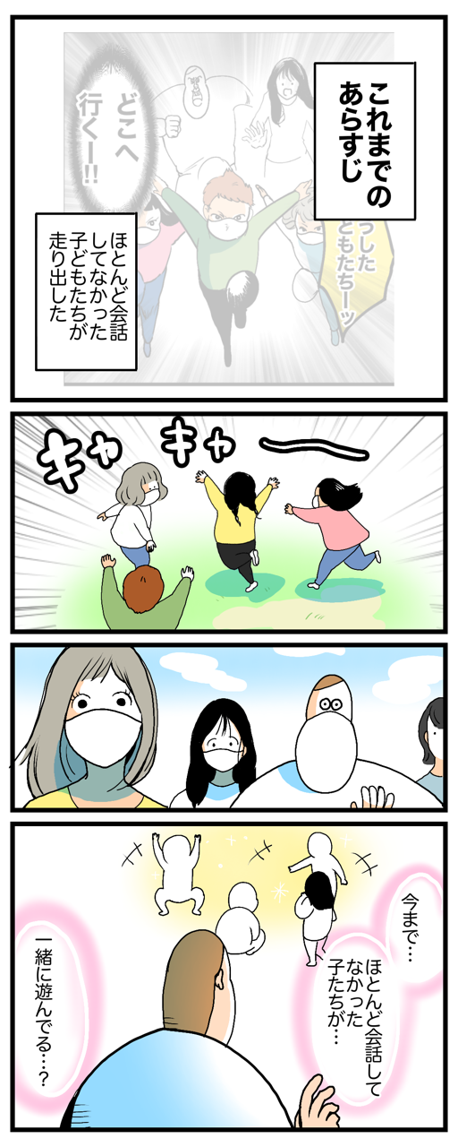 2021/05/13 👭ガク子と習い事仲間③最終回 一話二話 ↓今日で最終回です👭仲良くなれたっぽくて良かったです✌️完 「ガク子」カテゴリの最新記事 < 前の記事次の記事 > コメント コメント一覧 (51) 1. かほ 2021/05/13 12:02 素敵エピソードとガイル先生の習い事の謎で感情があったかいとおりこしてあつい 0 boobooboopiyo がしました 2. さ 2021/05/13 12:03 なんだか、泣けます⭐︎ 0 boobooboopiyo がしました 3. 八兵衛 2021/05/13 12:03 念能力みたいだな………ガクちゃんが 楽しそうでなによりでやんす 0 boobooboopiyo がしました 4. ささらさら 2021/05/13 12:03 これが、ニュータイプってやつか…。 0 boobooboopiyo がしました 5. まるさん 2021/05/13 12:04 ブブさんの「こんな、、」のセリフからポイズン歌い出すかと思ってしまった😂 子どもたちはホント強くたくましいですよね✨ 0 boobooboopiyo がしました 6. 房子 2021/05/13 12:10 凄い スパイみたい 0 boobooboopiyo がしました 7. チリ 2021/05/13 12:11 泣けてきますね😢コロナでなんか 殺伐とした世の中でも お子さま達は友情を育んでたんですね💕 いやはや 素敵なお話で胸がさわやかになりました😃 0 boobooboopiyo がしました 8. ゆめ 2021/05/13 12:13 シリーズ最終話待ってました!!!😆✨ ついつい、もらい泣きです💦 今の子供達はお互いの素顔もまともに見たことないんじゃないかと本当に可哀想ですが、適応できちゃう強さにあらためて感動します👍 0 boobooboopiyo がしました 9. 🥕 2021/05/13 12:16 よかったねぇ、ガクちゃん☺️ ガクちゃんはカリスマ性がありそうなのでお友達の人気者になりそう✨ 0 boobooboopiyo がしました 10. みみもん 2021/05/13 12:22 泣いた!!! 強いって素敵 0 boobooboopiyo がしました 11. まっちゃ 2021/05/13 12:28 うっ、涙が😭 0 boobooboopiyo がしました 12. 🐝 2021/05/13 12:32 子どもたちのコミュニケーション能力、すごい…!! この前聞いた話ですが、今の若き学生さんたちの間では、まだマスク姿しか知らないけどあの人が好き、どんな素顔なんだろう…という、さながら平安時代のような恋愛模様があるとか。 マスクがあったって、思うように喋れなくたって、ガクちゃんたちのように、みんなわずかなコンタクトを積み重ねて絆を育んでいるんだと思うと、なんだかジーンとしてしまう… 0 boobooboopiyo がしました 13. あ 2021/05/13 12:40 こどもの世界は時々ミラクルが起きて、育児疲れも癒されます。それを思いださせてもらいました。幸せです。ブブさんの観察力と表現力凄すぎです😭 0 boobooboopiyo がしました 14. なまえがなしこ 2021/05/13 12:45 かわいい、そしてたくましい。 生きる力、ってこういうことかな。 子供って子供って…。 0 boobooboopiyo がしました 15. ぽんぽこ 2021/05/13 12:47 みんなウィンクマスターになっちゃえばいいよ! 0 boobooboopiyo がしました 16. はっち 2021/05/13 12:51 お母様たちの目が点の表情…最高です🥰🥰🥰 いつのまにか仲良くなりますよね❤️ 0 boobooboopiyo がしました 17. ぶんぶん 2021/05/13 12:59 この状況でも、変わらずに元気な子供達を見ると ホッとします。 正しい社会の中にいる気持ちになりますし、励まされます。 素敵な瞬間をシェアして下さりありがとうございます😊 0 boobooboopiyo がしました 18. 通りすがり 2021/05/13 13:02 素敵な話❤️ お母さんたちも一安心ですね✨ 0 boobooboopiyo がしました 19. ままぞん 2021/05/13 13:05 昨今のマスクした大人のとぼしい表情しか見れない赤ちゃんの将来が問題視されてますが、 絶対それをカバーする新しい能力産み出すと思ってます!! コロナで一番我慢を強いられている子供たち…でも順応性は想像を超えていると思います、この子供たちのように(T_T) 0 boobooboopiyo がしました 20. マシャシコ 2021/05/13 13:07 あらすじ🤣 子供たち…イカシた能力だ…!! こんな時代でも適応力抜群で, 流石若い脳🧠です✨ ゆうじは虎杖から…?ですかね?💥🤛 0 boobooboopiyo がしました 21. がくこらぶ 2021/05/13 13:32 子供達が仲良くしてくれると親はホッとしますよね🎵 0 boobooboopiyo がしました 22. デオ 2021/05/13 13:36 尊いってのはこういう事なのかい…? 早くマスク無しで遊べるようになると良いなぁ。 0 boobooboopiyo がしました 23. み。 2021/05/13 13:48 子供ってすごい!!!! わたしには無い能力、、、笑 0 boobooboopiyo がしました 24. ななしのカレー 2021/05/13 13:50 同じく泣けました。君たちは強い! 0 boobooboopiyo がしました 25. のん 2021/05/13 14:02 子供すごすぎる♡ほっこり 0 boobooboopiyo がしました 26. なめこ 2021/05/13 15:10 涙が…😭もうすぐ2歳の娘の言葉が遅くて、保育園の先生に「そういう子が多い気がするけど、マスクで動く口元を見る機会が減ったかじゃ無いかな」って言われてナルホドと思い、マスクして子どもに話し掛ける時は目元で表情を作るようにしてます! 0 boobooboopiyo がしました 27. ゆきりん 2021/05/13 15:15 尊い…♡ 0 boobooboopiyo がしました 28. さえ 2021/05/13 15:30 同じ環境、場所を共有するといつのまにか絆が生まれる! 0 boobooboopiyo がしました 29. メメ 2021/05/13 15:34 フェイクが強すぎて、まったくわからん 0 boobooboop